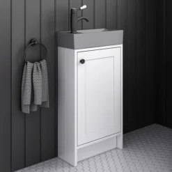 A modern D type matt black cabinet door handle for use with our stylish modern bathroom furniture ranges.