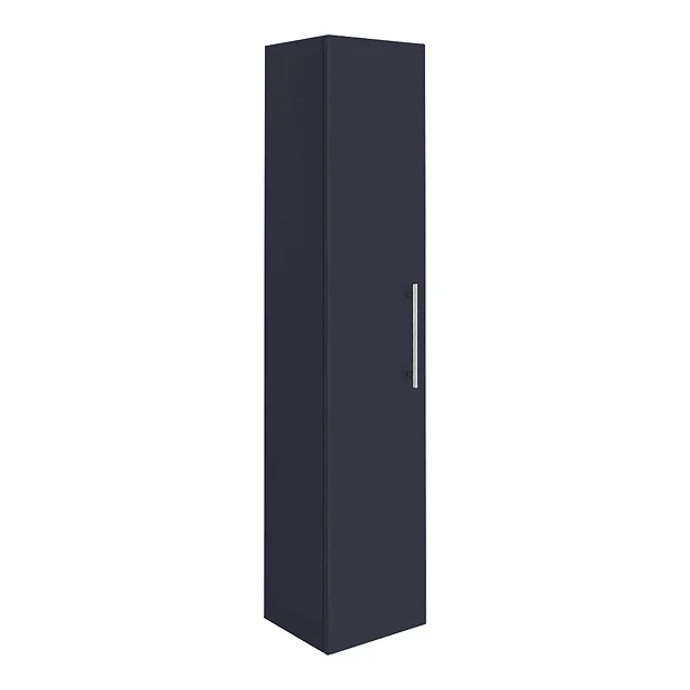 The Arezzo matt blue Industrial style bathroom furniture range combines up to date looks with practical storage. Features a soft close door and provides plenty of space for toiletries, the Arezzo wall hung tall storage cabinet is perfect for adding modern style to any bathroom. Supplied with a on-trend round satin chrome knurled detail handle, great for creating an eye catching industrial look in your bathroom. Wall fixings included.
