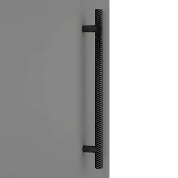 Arezzo Industrial Style Matt Grey Wall Hung Single Door Tall Storage Cabinet + Matt Black Knurled Round Pull Handle