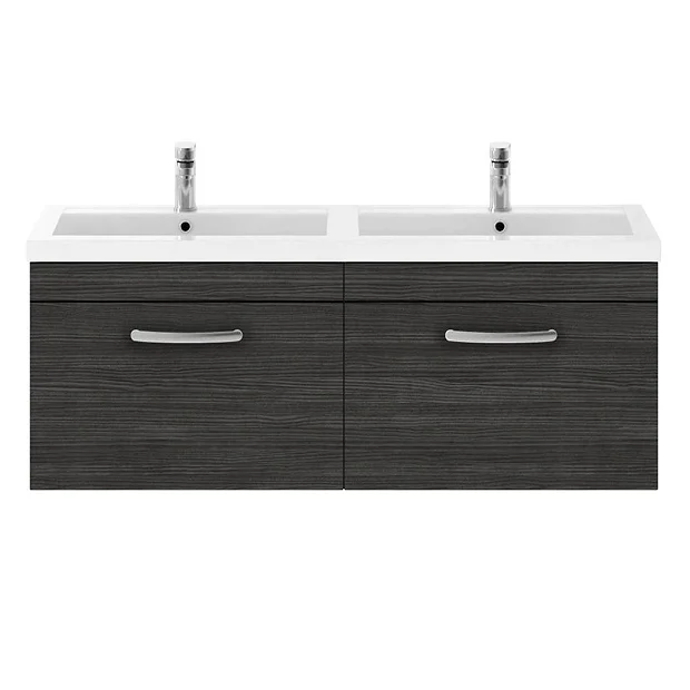 Brooklyn 1205mm Black Wall Hung 2 Drawer Double Basin Vanity Unit
