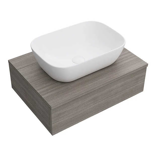 Brooklyn 600mm Wall Mounted Countertop 1-Drawer Basin Shelf – Grey Avola – incl. 465 x 325mm Gloss White Curved Rectangular Counter Top Basin