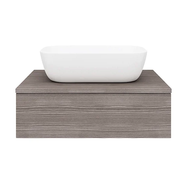 Finished in high quality grey brown avola textured wood effect and with it’s clean lines this vanity unit is perfect for renewing the style in any bathroom. Supplied with a gloss white curved rectangular counter top basin, its stylish modern design hides all unsightly pipework creating a neat modern look. A soft closing drawer provides generous storage space for your toiletries, helping to keep your bathroom clutter free. Unit features a eye-catching stylish textured wood effect finish, basin has been designed for use with extended tall basin mixers or wall basin mixers.
