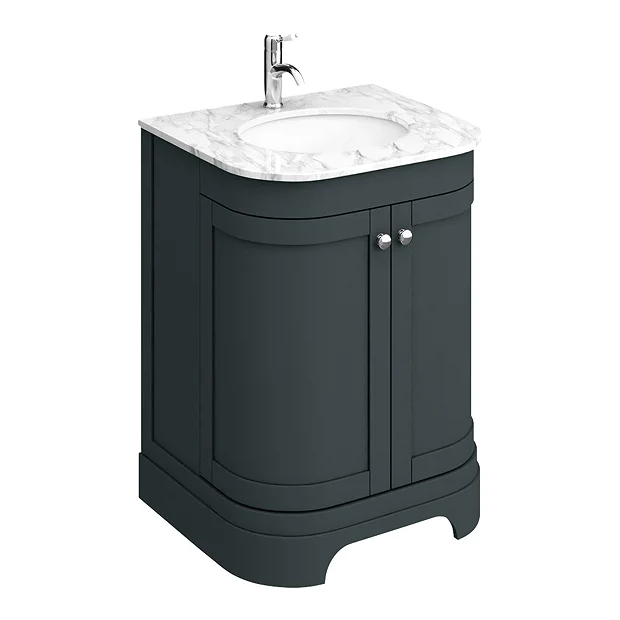 Period Bathroom Co. 620mm Dark Grey Curved 2 Door Vanity Unit with 1 Tap Hole Marble Basin Top